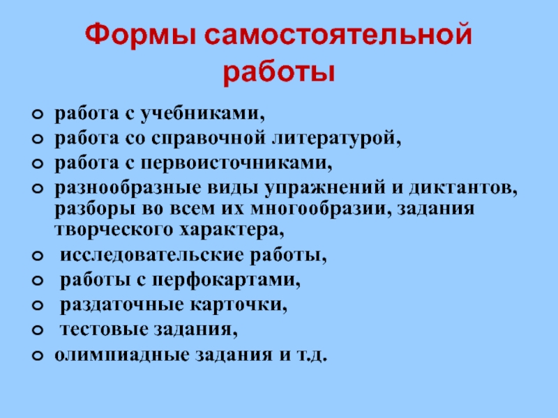 Слайд 9Формы самостоятельной работы