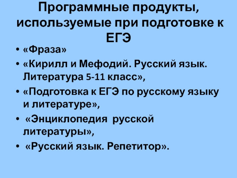 Слайд 20Программные продукты, используемые при подготовке к ЕГЭ