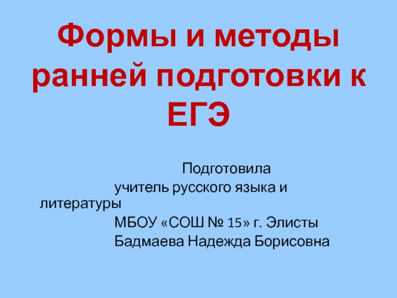 ранней подготовки к ЕГЭ