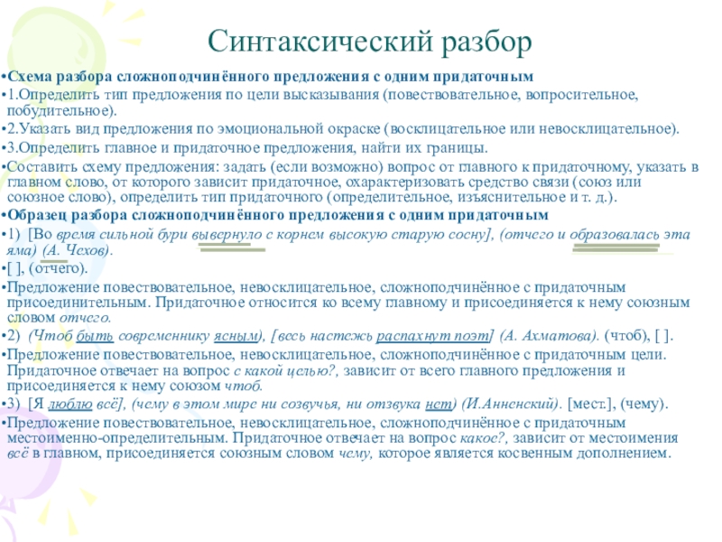Образец разбора сложноподчинённого предложения с одним придаточным