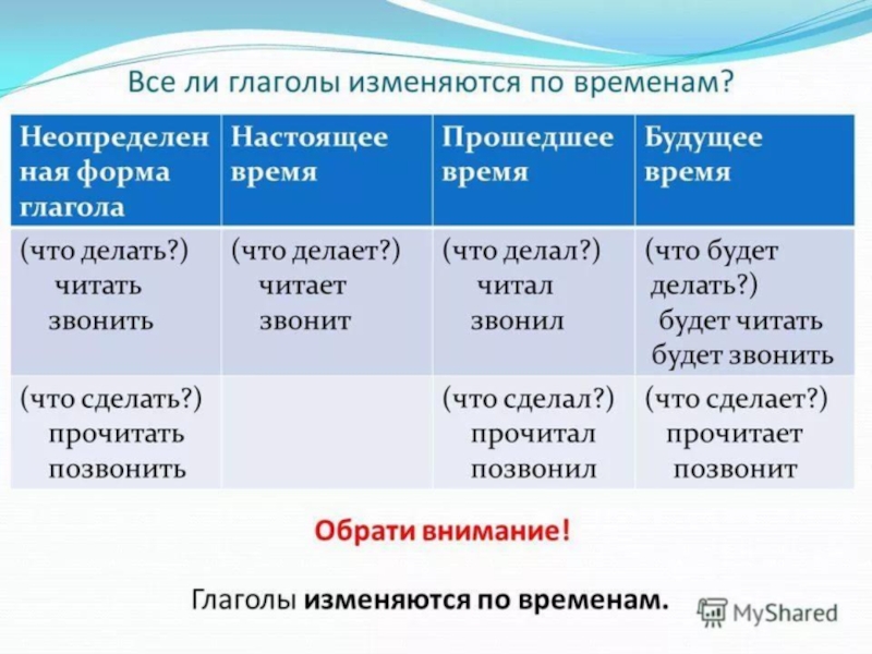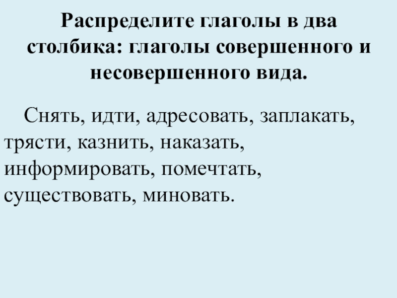 Слайд 37Распределите глаголы в два столбика: глаголы совершенного и несовершенного вида.