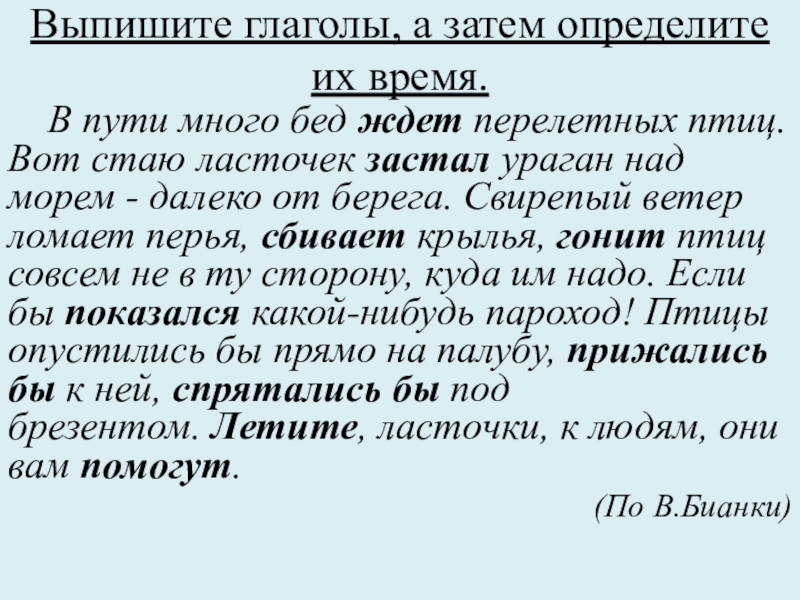 Слайд 35Выпишите глаголы, а затем определите их время.