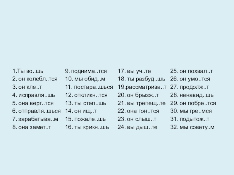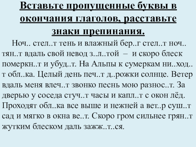 Слайд 45Вставьте пропущенные буквы в окончания глаголов, расставьте знаки препинания.