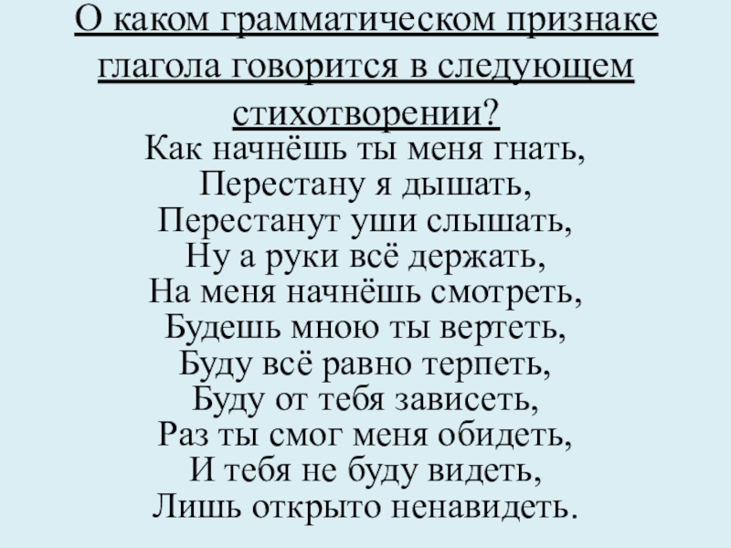 Слайд 33О каком грамматическом признаке глагола говорится в следующем стихотворении?