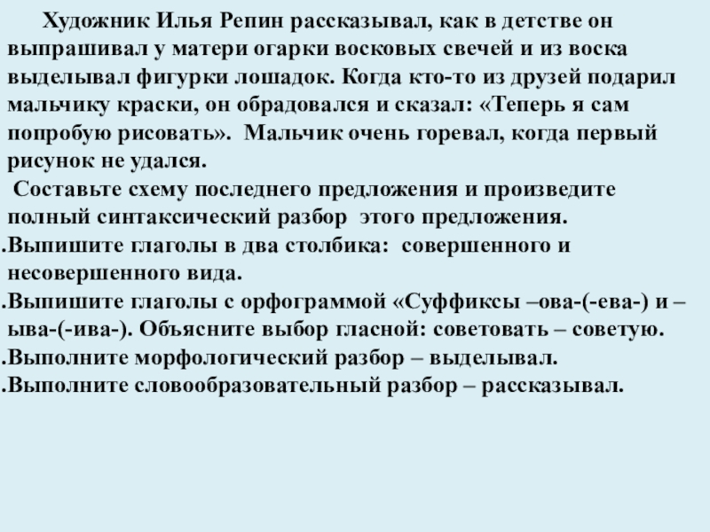 Слайд 49 Художник Илья Репин рассказывал, как в детстве он выпрашивал у матери
