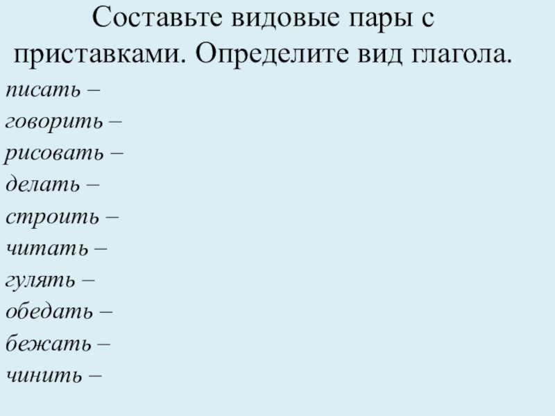 Слайд 23Составьте видовые пары с приставками. Определите вид глагола.