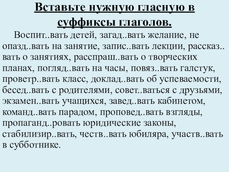 Воспит..вать детей, загад..вать желание, не опазд..вать