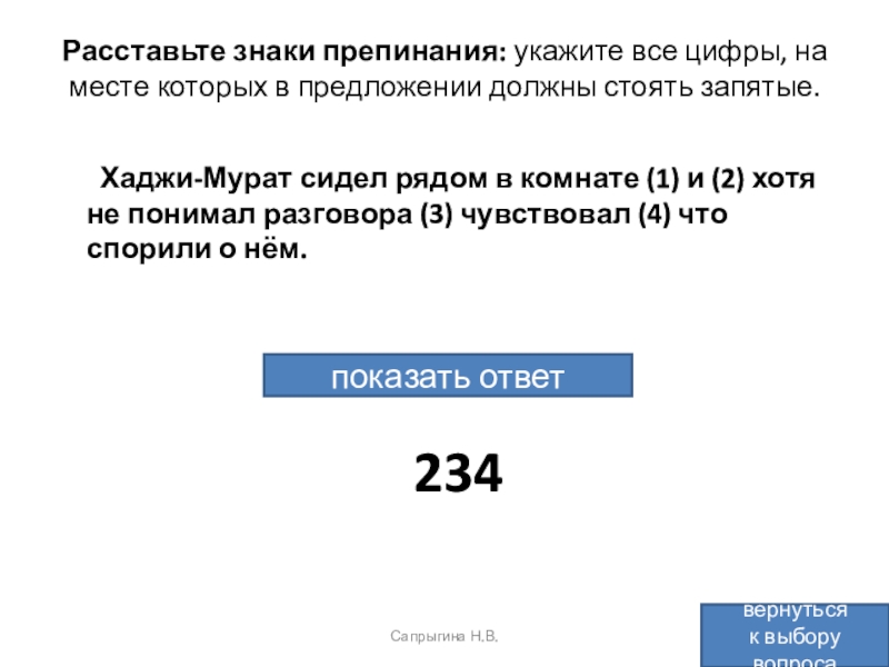 Хаджи-Мурат сидел рядом в комнате (1) и (2) хотя не понимал разговора (3) чувствовал (4) что спорили о нём.