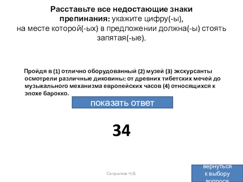 Пройдя в (1) отлично оборудованный (2) музей (3) экскурсанты осмотрели различные диковины: от древних тибетских мечей до музыкального механизма европейских часов (4) относящихся к эпохе барокко.