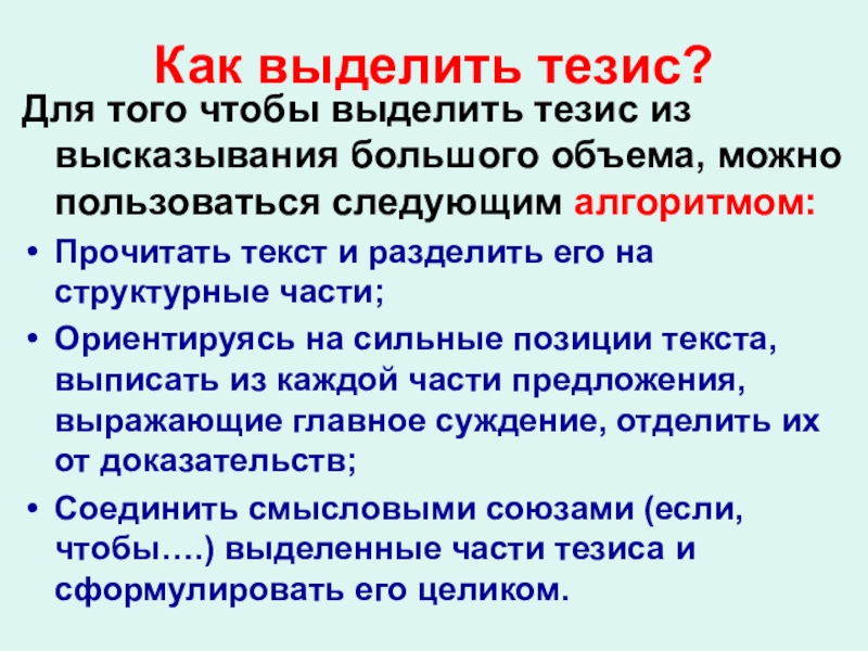 Соединить смысловыми союзами (если, чтобы….) выделенные части тезиса и сформулировать его целиком.