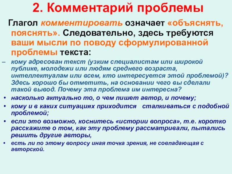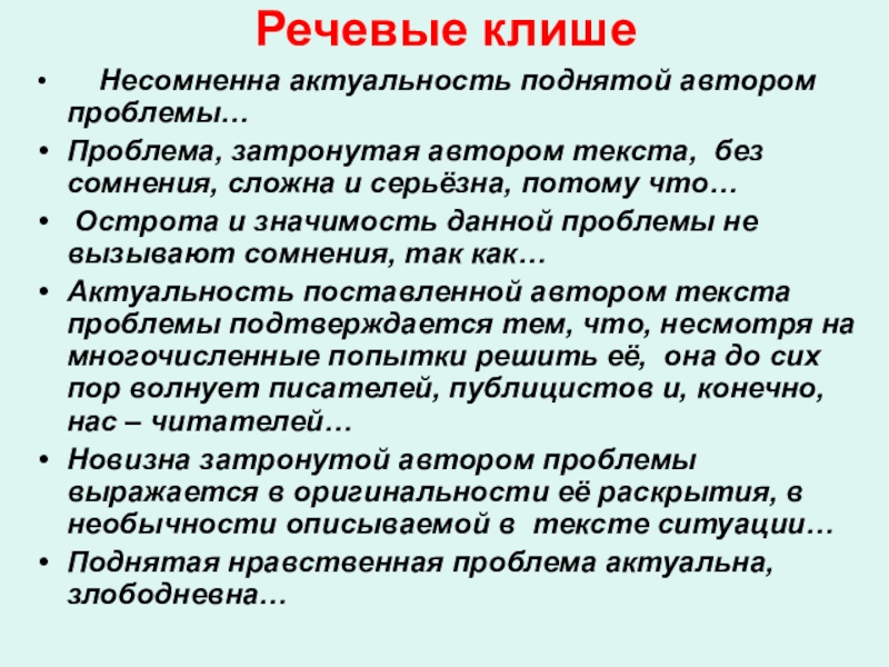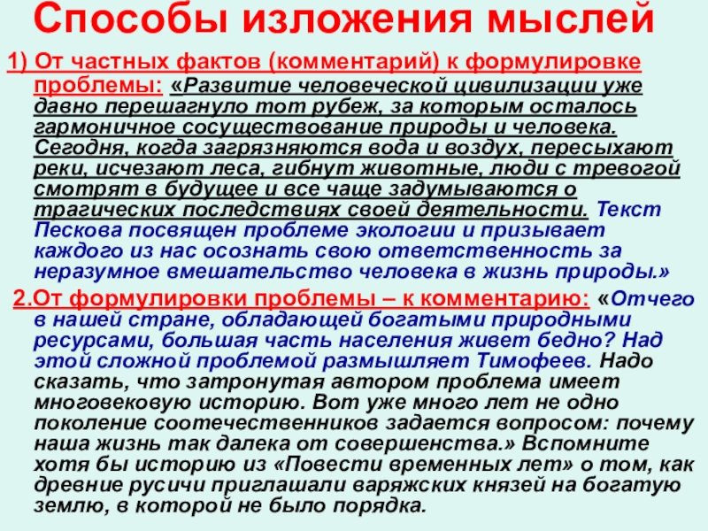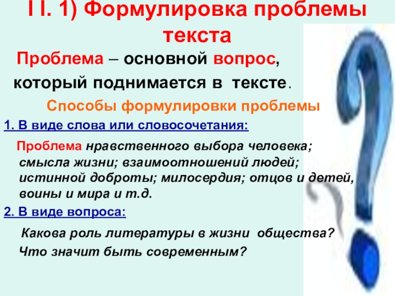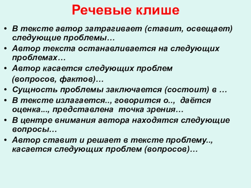 Автор ставит и решает в тексте проблему.., касается следующих проблем (вопросов)…