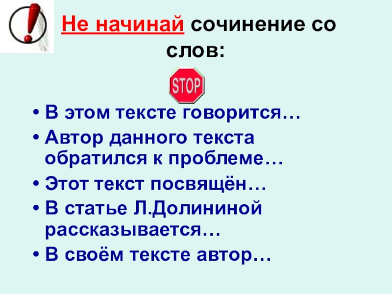 авторе текста: об основных проблемах, которые он затрагивал в своих произведениях, о художественном мире. (Такое вступление уместно только в том случае, если вы действительно знакомы с творчеством этого автора.)