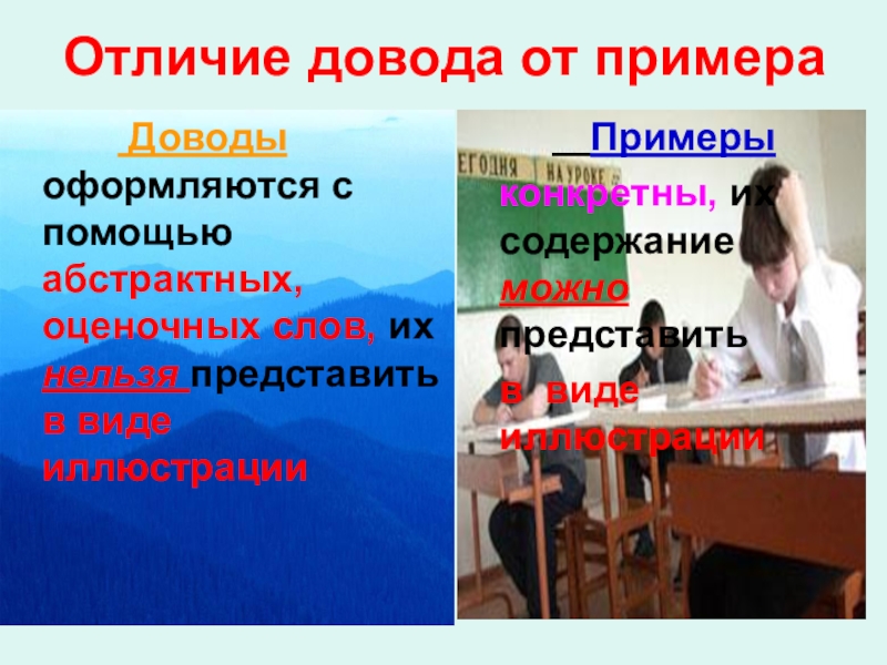 Довод – это мысль, содержащая необходимые доказательства оттенки в раскрытии, основной проблемы текста.