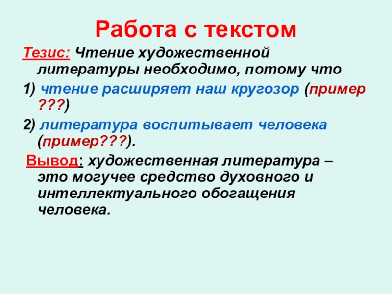 Вывод: художественная литература – это могучее средство духовного и интеллектуального обогащения человека.