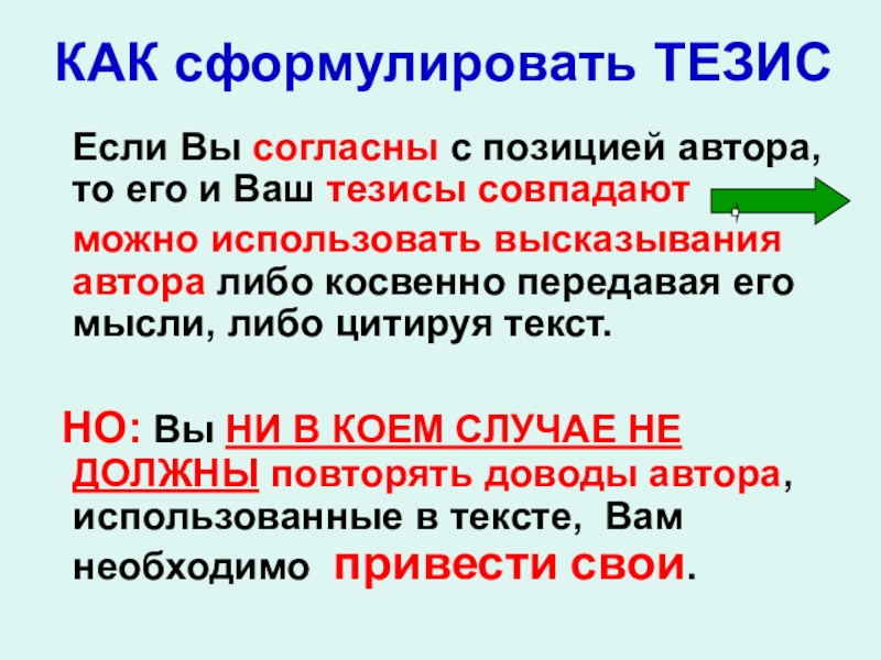 НО: Вы НИ В КОЕМ СЛУЧАЕ НЕ ДОЛЖНЫ повторять доводы автора, использованные в тексте, Вам необходимо привести свои.