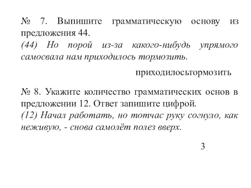 Слайд 19№ 7. Выпишите грамматическую основу из предложения 44.