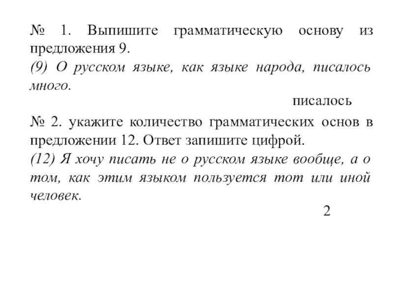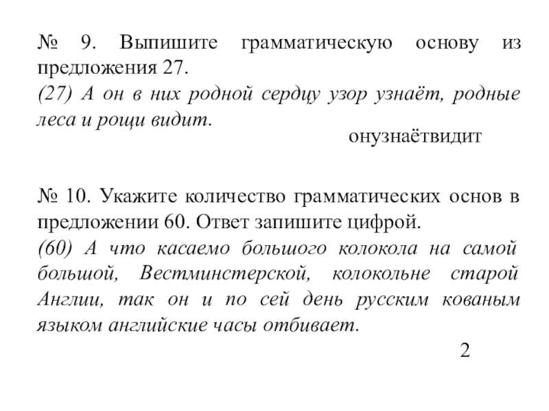 Слайд 16№ 1. Выпишите грамматическую основу из предложения 9.