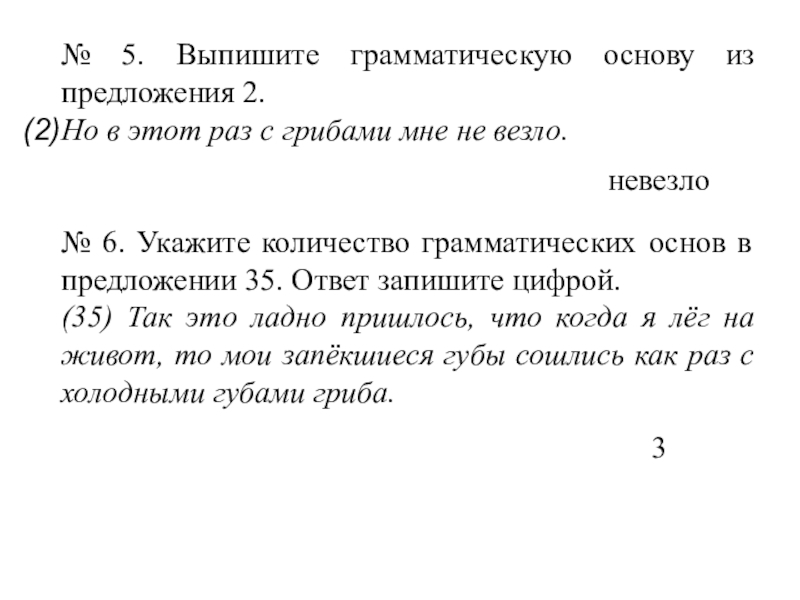 Слайд 17№ 3. Выпишите грамматическую основу из предложения 4.