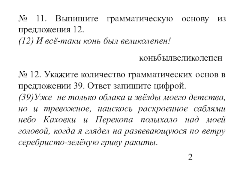 № 2. укажите количество грамматических основ в предложении 12. Ответ запишите цифрой.
