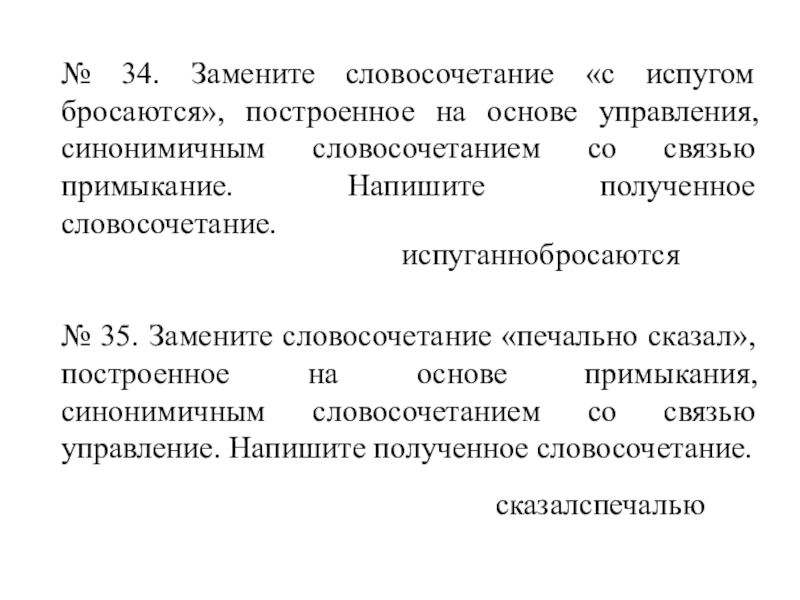 Слайд 40№ 34. Замените словосочетание «с испугом бросаются», построенное на основе управления,