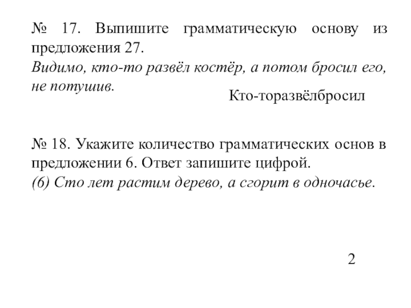 Слайд 24№ 17. Выпишите грамматическую основу из предложения 27.