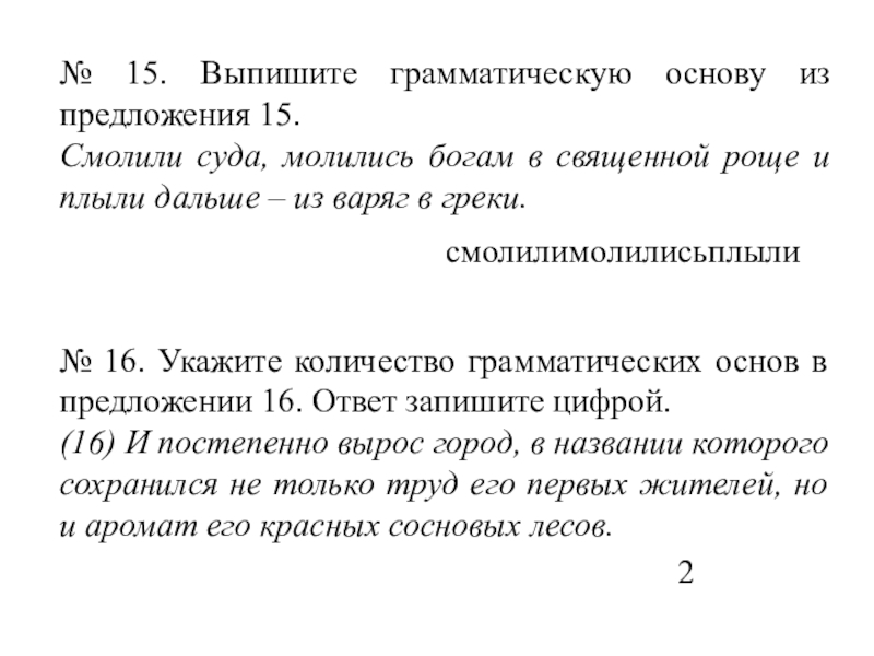 Слайд 23№ 15. Выпишите грамматическую основу из предложения 15.
