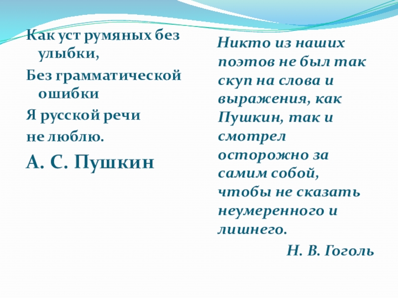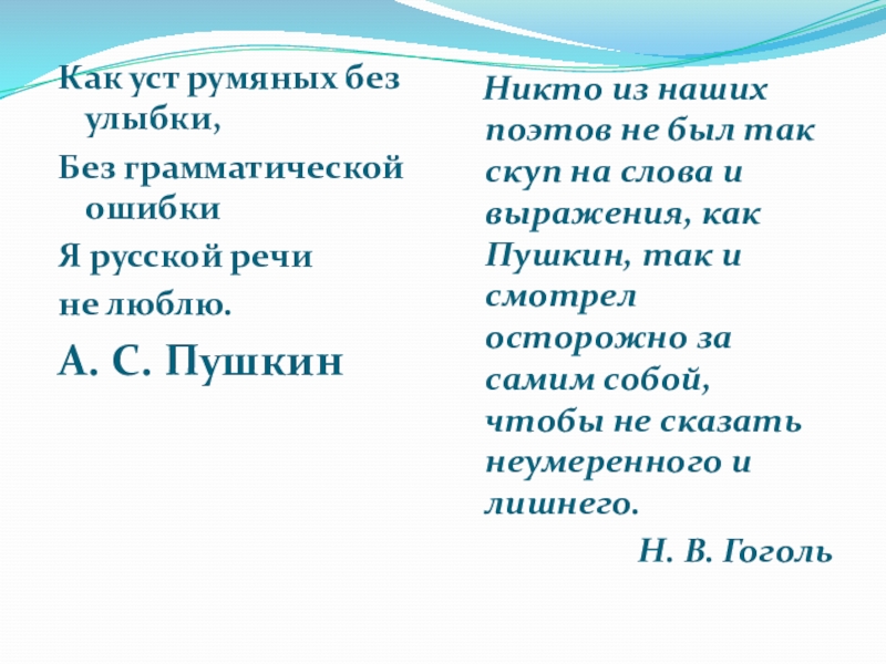 Никто из наших поэтов не был так скуп на слова и выражения, как Пушкин, так и смотрел осторожно за самим собой, чтобы не сказать неумеренного и лишнего.