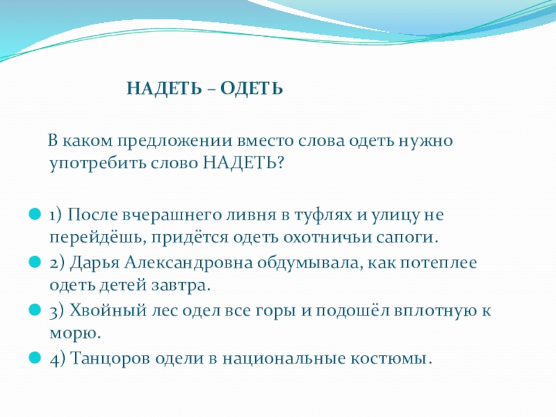 В каком предложении вместо слова одеть нужно употребить слово НАДЕТЬ?