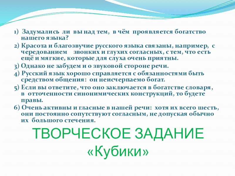 Слайд 19ТВОРЧЕСКОЕ ЗАДАНИЕ «Кубики»
