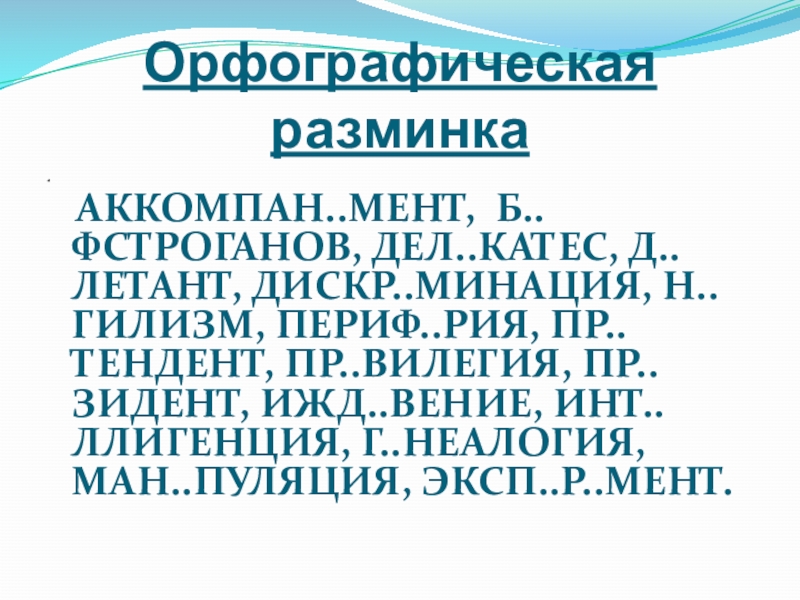 АККОМПАН..МЕНТ, Б..ФСТРОГАНОВ, ДЕЛ..КАТЕС, Д..ЛЕТАНТ, ДИСКР..МИНАЦИЯ, Н..ГИЛИЗМ, ПЕРИФ..РИЯ,