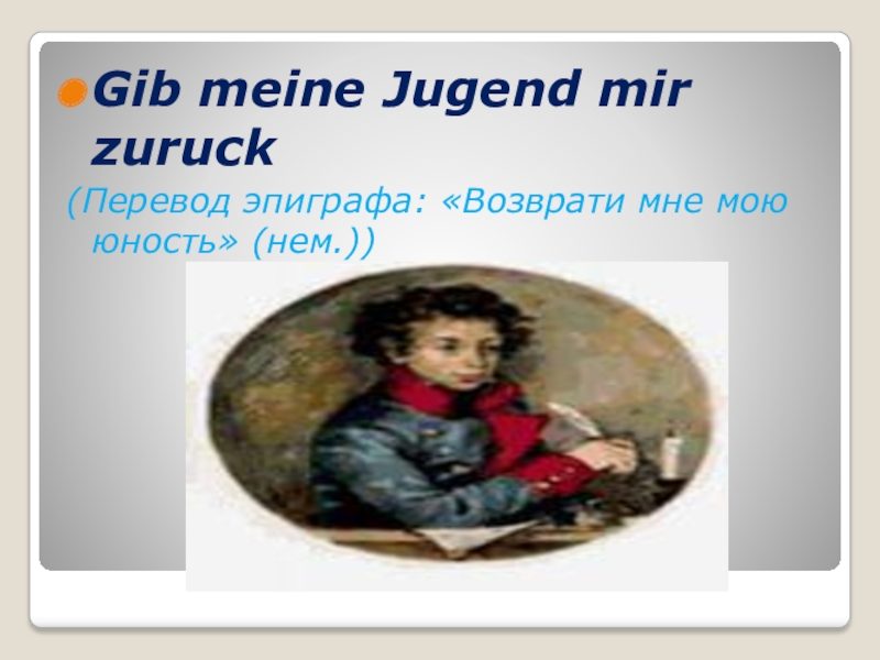 (Перевод эпиграфа: «Возврати мне мою юность» (нем.))