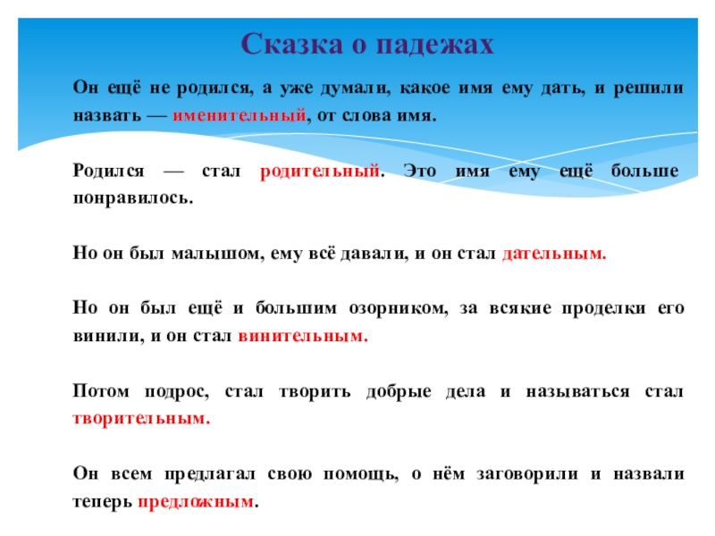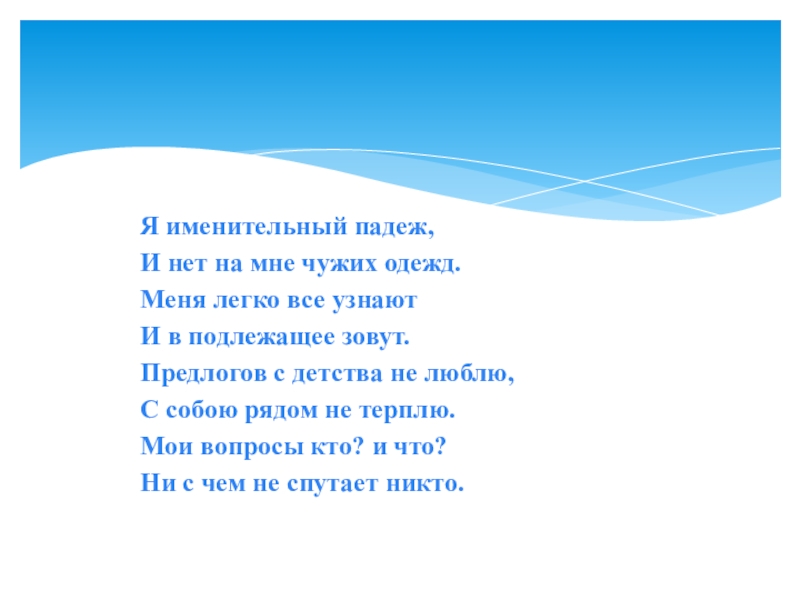 - научиться распознавать именительный падеж, не путать его с другими падежами.