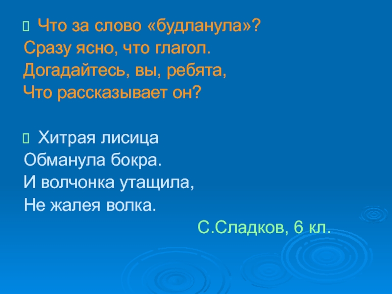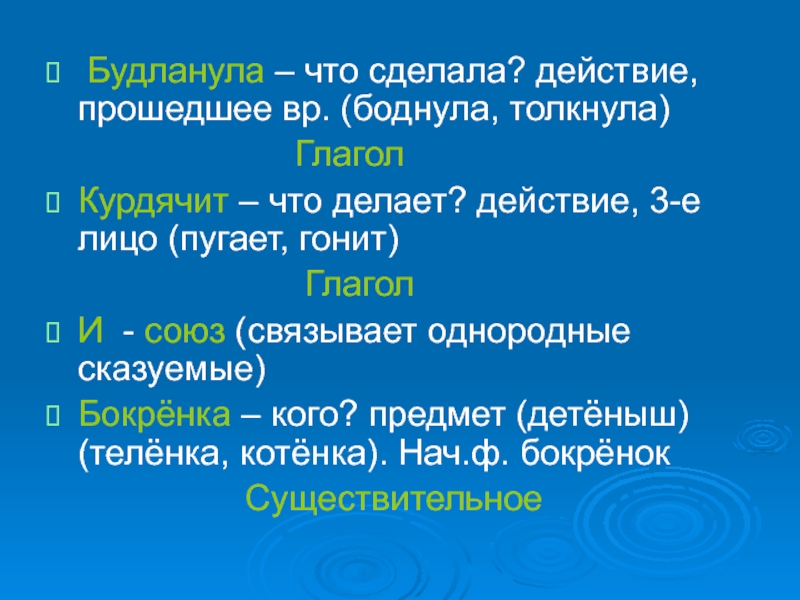 Будланула – что сделала? действие, прошедшее вр. (боднула, толкнула)