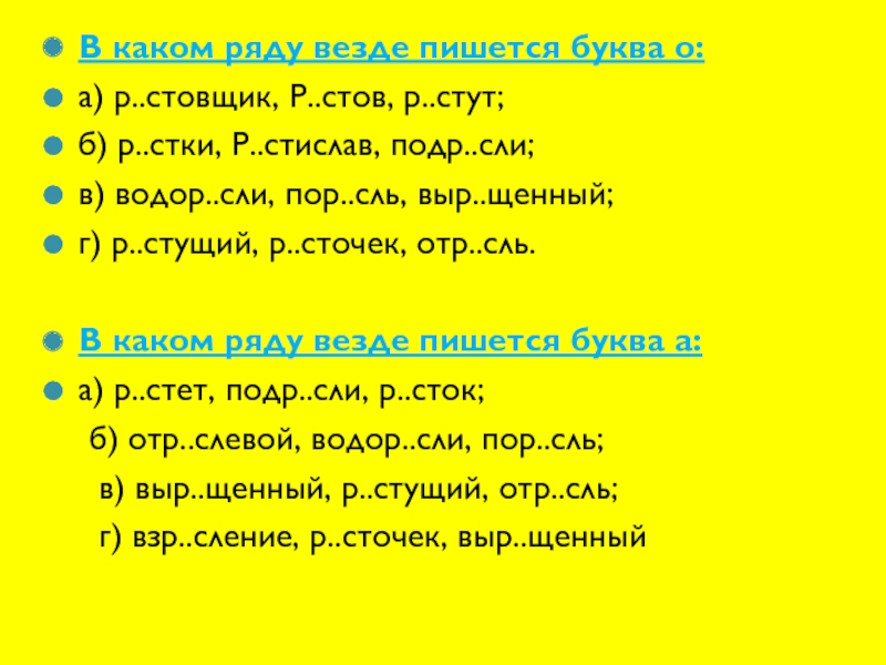Исключения: отрасль, росток, Ростов, Ростислав.