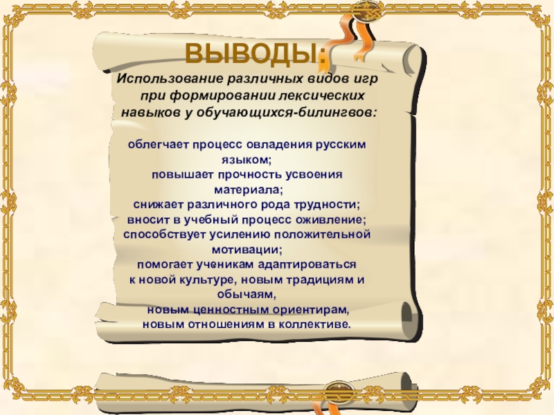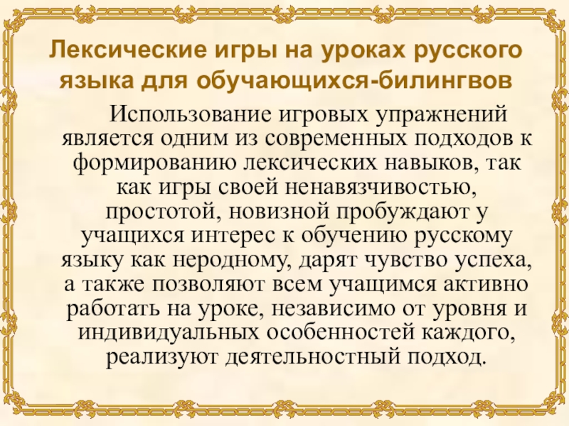 Слайд 3Лексические игры на уроках русского языка для обучающихся-билингвов