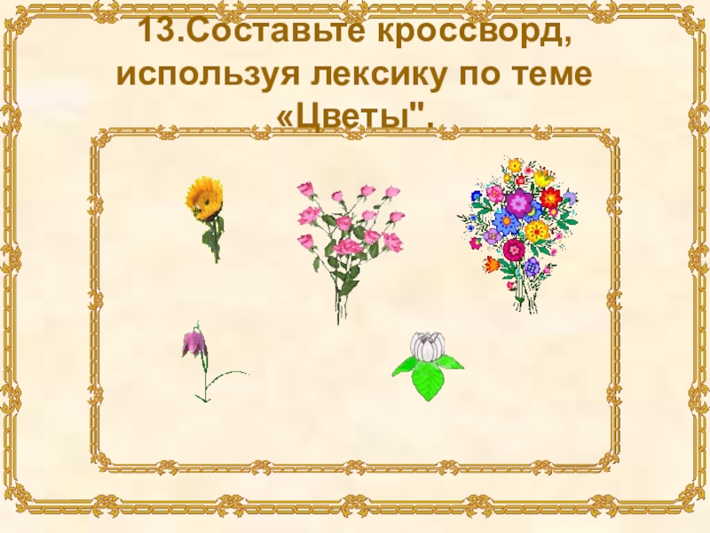 Слайд 2913.Составьте кроссворд, используя лексику по теме «Цветы".