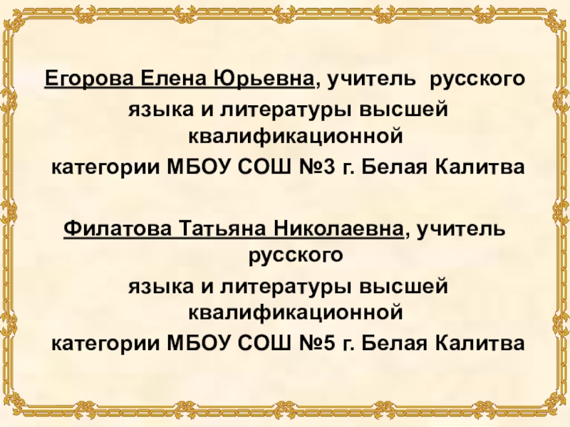 Слайд 33Егорова Елена Юрьевна, учитель русского