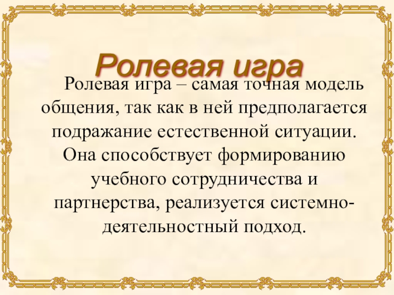 точная модель общения, так как в ней предполагается подражание естественной ситуации. Она способствует формированию учебного сотрудничества и партнерства, реализуется системно-деятельностный подход.