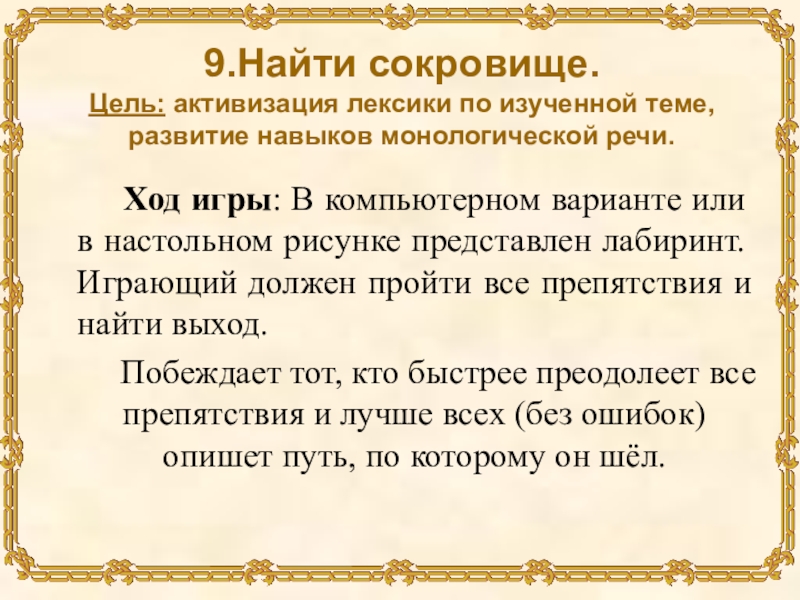 настольном рисунке представлен лабиринт. Играющий должен пройти все препятствия и найти выход.