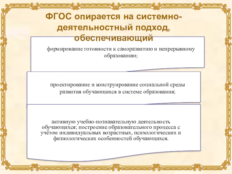 ФГОС опирается на системно-деятельностный подход, обеспечивающий