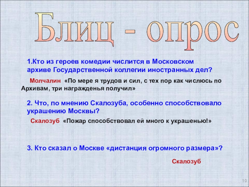 2. Что, по мнению Скалозуба, особенно способствовало украшению Москвы?