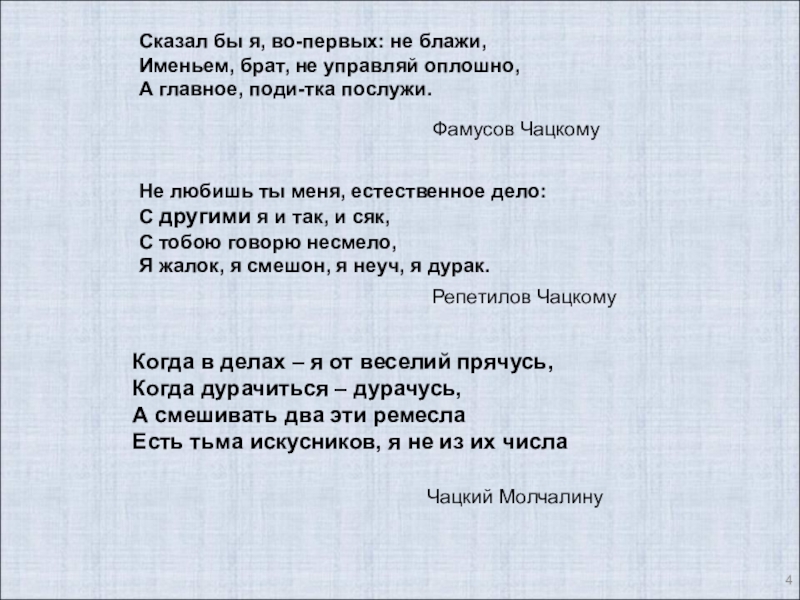 Молчалин «По мере я трудов и сил, с тех пор как числюсь по