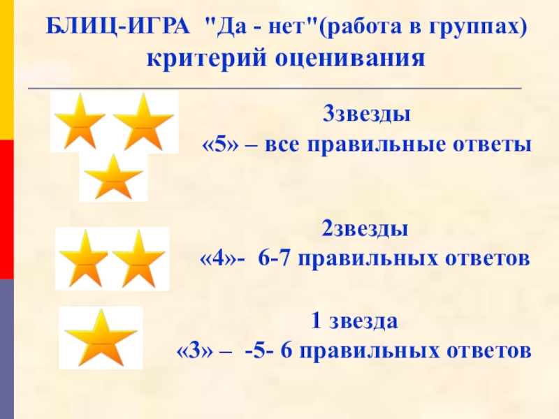 БЛИЦ-ИГРА "Да - нет"(работа в группах)