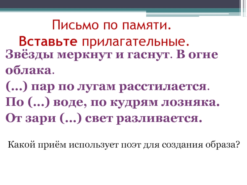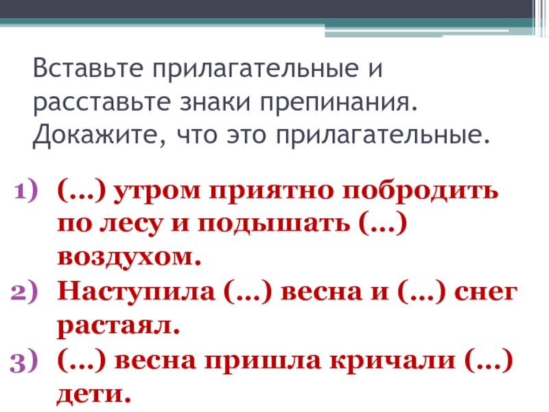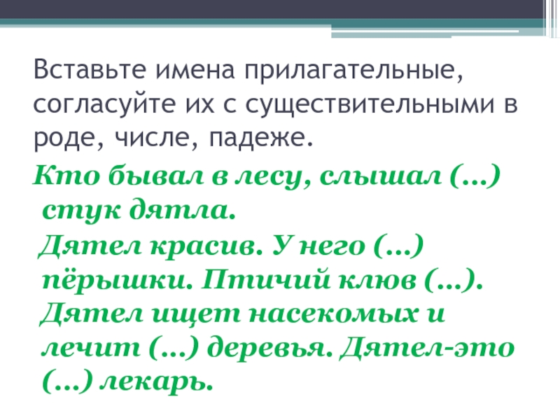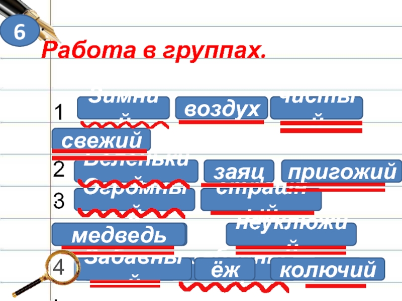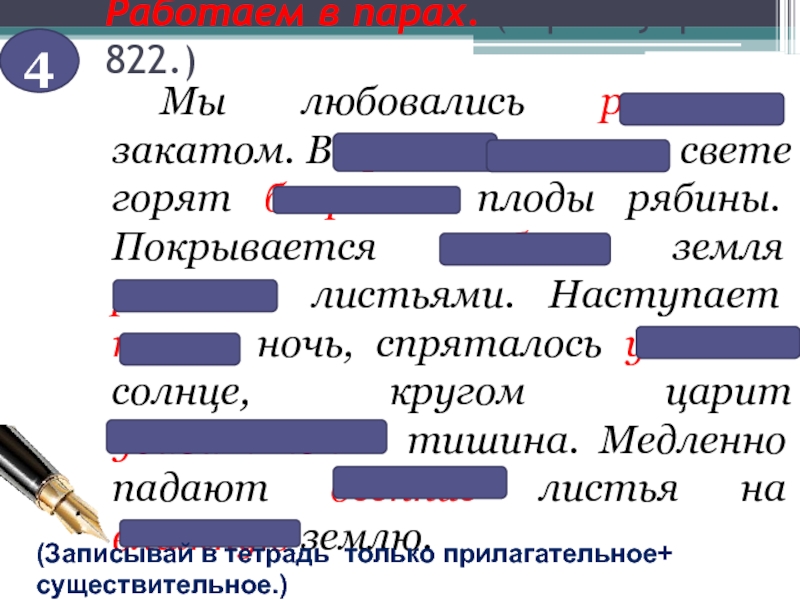 (Записывай в тетрадь только прилагательное+ существительное.)