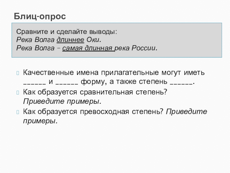 Качественные имена прилагательные могут иметь ______ и ______ форму, а также степень ______.