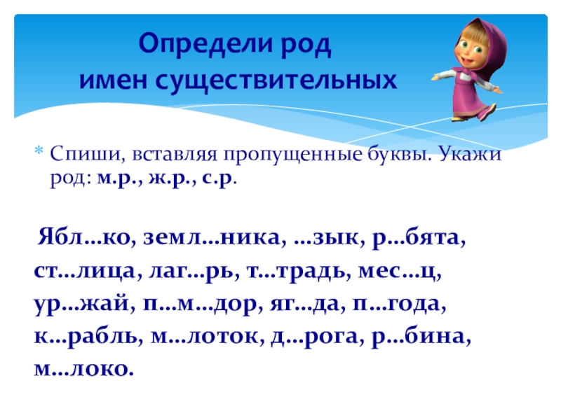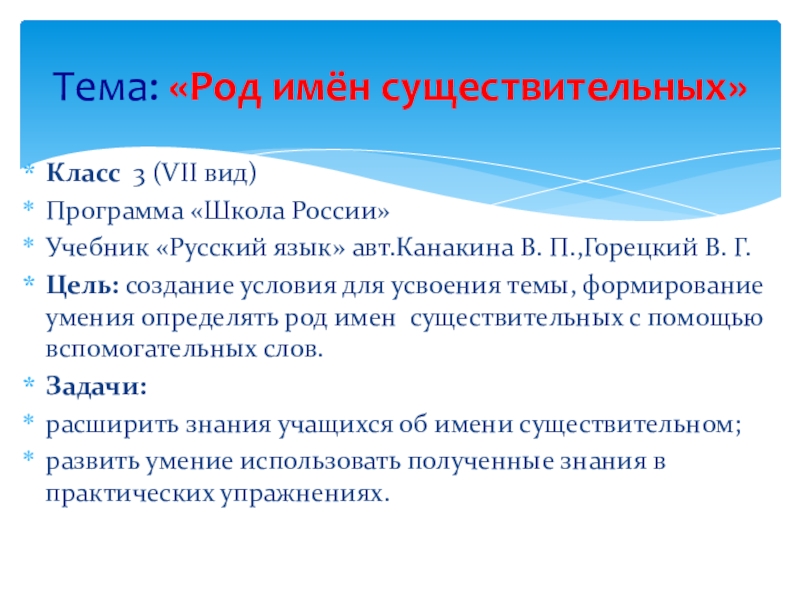 Тема: «Род имён существительных»