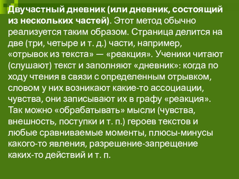 Слайд 19Двучастный дневник (или дневник, состоящий из нескольких частей). Этот метод обычно