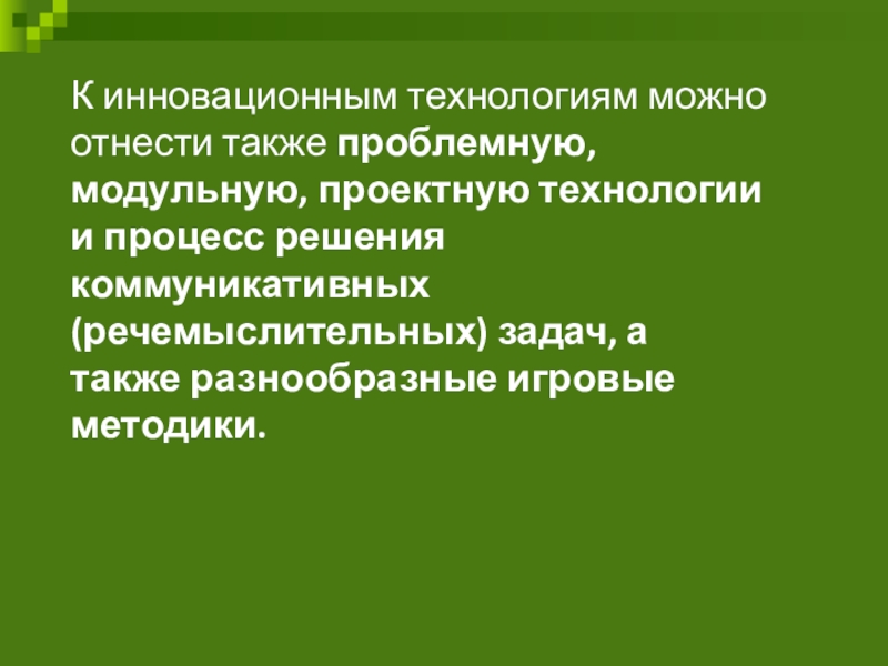 Слайд 23К инновационным технологиям можно отнести также проблемную, модульную, проектную технологии и