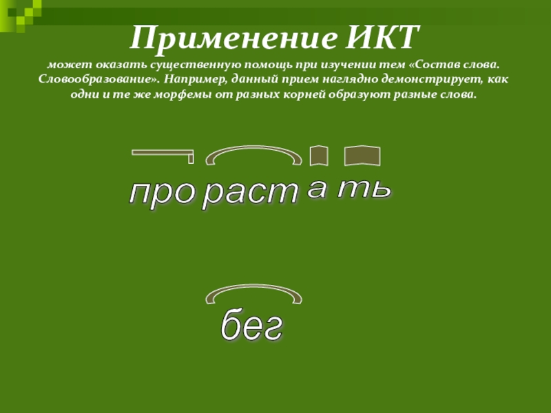 Применяется в рамках тем «Состав слова. Способы словообразования» на