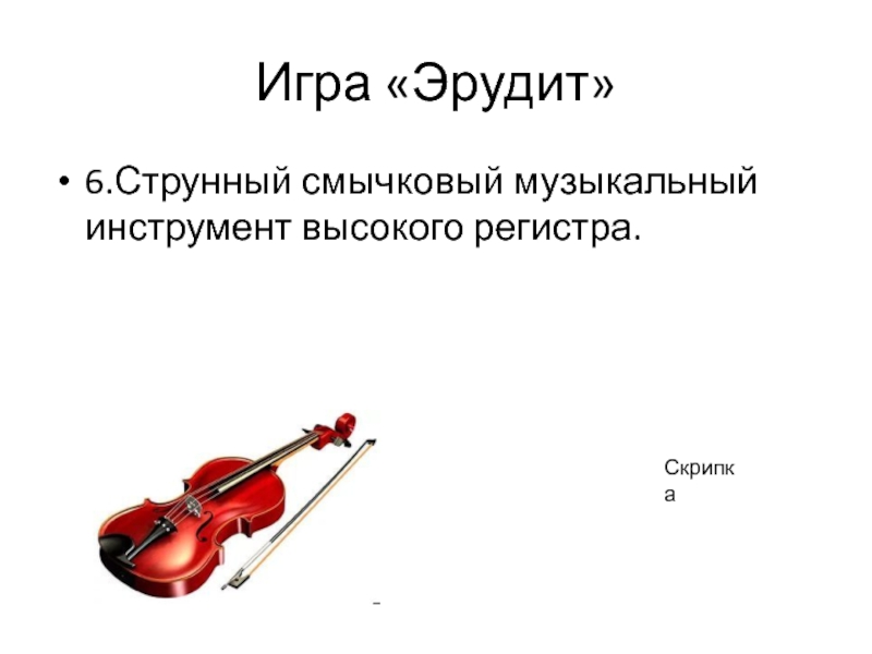 6.Струнный смычковый музыкальный инструмент высокого регистра.